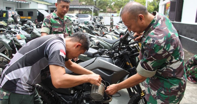 Bukan sekadar "servis biasa", kehadiran tim yang dipimpin oleh Lettu Cpl Andik ini merupakan wujud jemput bola demi menjaga "nadi" vital prajurit. Pergantian oli pada kendaraan roda dua maupun roda empat operasional menjadi agenda awal, memastikan setiap roda berputar lancar melintasi medan Temanggung yang penuh tantangan. Namun, perhatian tim tidak berhenti di situ. Senjata organik, yang kerap diibaratkan "nyawa" kedua bagi setiap prajurit, juga menjadi fokus utama.