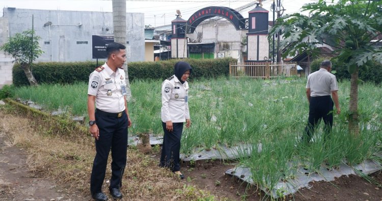 Temanggung - Kepala Rumah Tahanan Negara (Rutan) Kelas IIB Temanggung, Hendra Prastya Nugraha terjun langsung memantau kondisi lahan pertanian yang berada di area rumah dinas Rutan Temanggung. Kegiatan ini dilakukan untuk memastikan kesiapan hasil pertanian berupa bawang merah yang akan memasuki masa panen. Kamis (22/1/2026).