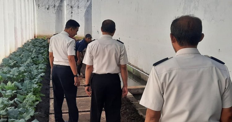 Temanggung - Kepala Rumah Tahanan Negara (Rutan) Kelas IIB Temanggung Hendra prastya Nugraha melakukan pemantauan langsung dengan berkeliling area brandgang Rutan Temanggung. Kegiatan ini dilaksanakan untuk memastikan kondisi keamanan dan ketertiban tetap terjaga, sekaligus meninjau pelaksanaan program ketahanan pangan yang berjalan di lingkungan rutan. Kamis (29/1/2026).